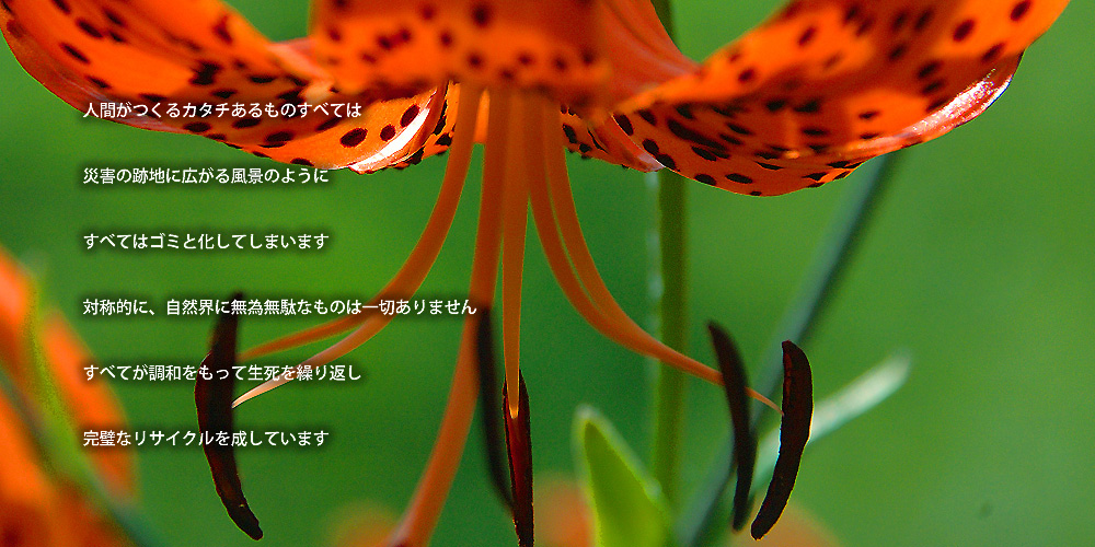 91 白馬山麓の最奥にログハウスを自作 源流に流れ落ちた流木の小枝を素材に アクセサリーづくりはじめる 93 クラフト工房ネイチャーハウス開設 "小枝のアクセサリーたち"発表 94 生まれ育った大都会を脱し 白馬村にて田舎暮らしはじめる 96 長野市にて初個展 以降, 都内デパート出展等多数 その後、webクリエータを兼業 16 ガン摘出手術 退院直後にこの土地と運命的な出逢い リタイヤ後の南の島移住計画を無期延期とし 自宅兼アトリエを自ら設計施工"終の棲家"とする クラフト、webサイト制作、自宅建築…… その時々での行動/行為に違いがあるけれど 共通するのは「モノつくり」…… 流れに身をまかせつ移ろいでいます
